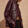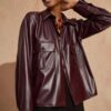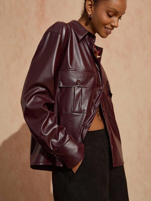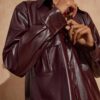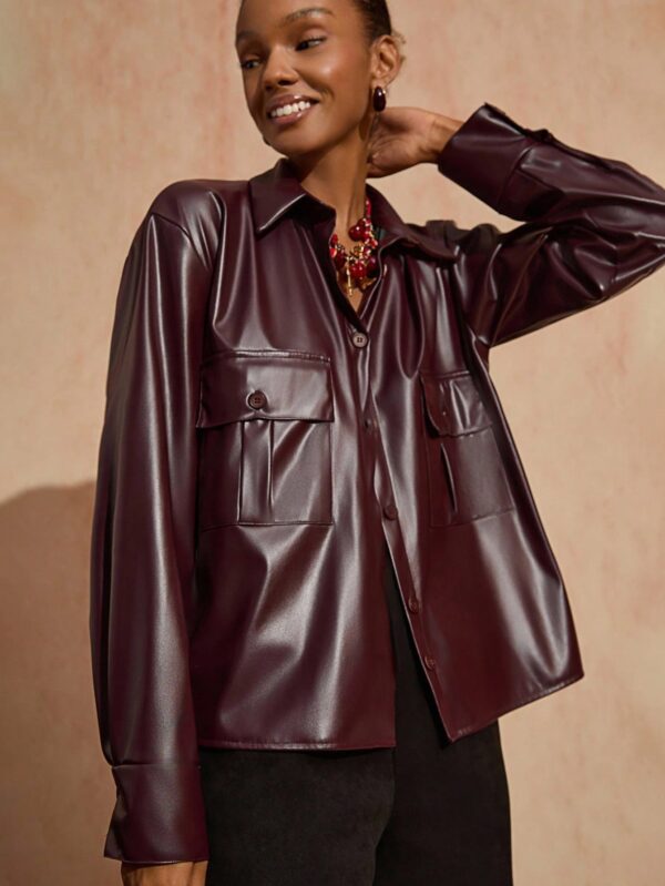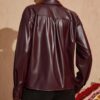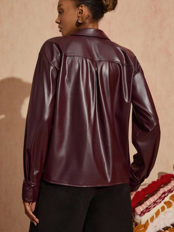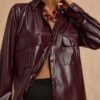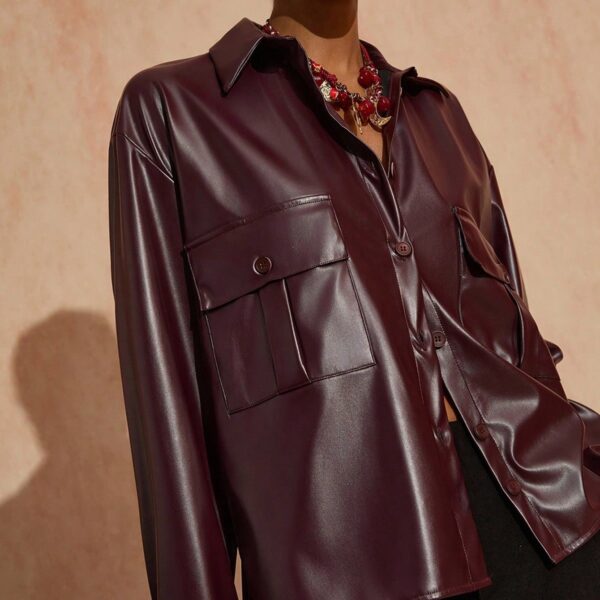 %90 Polyester %10 Elastane PU Kadın Deri Gömlek