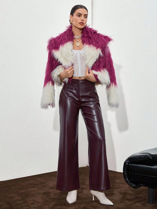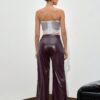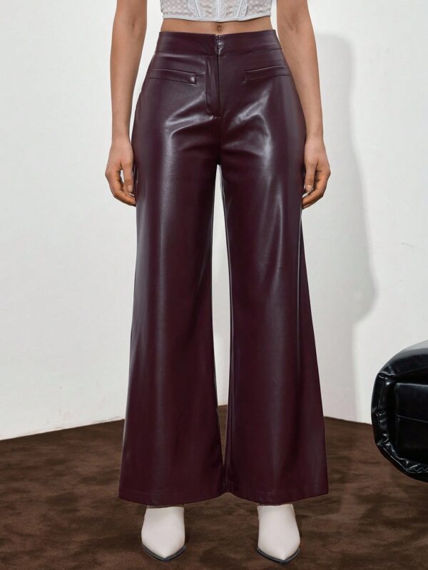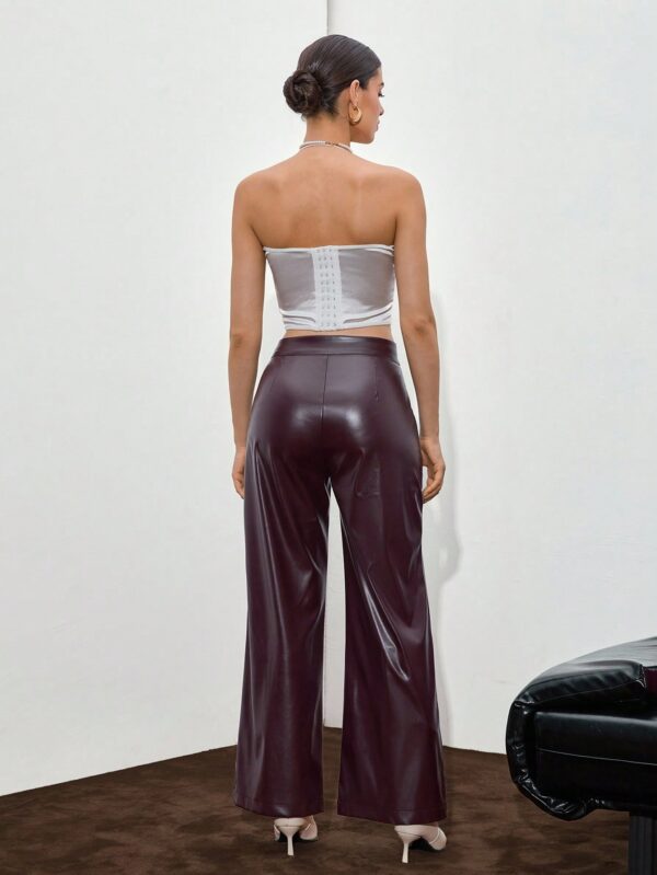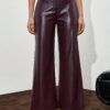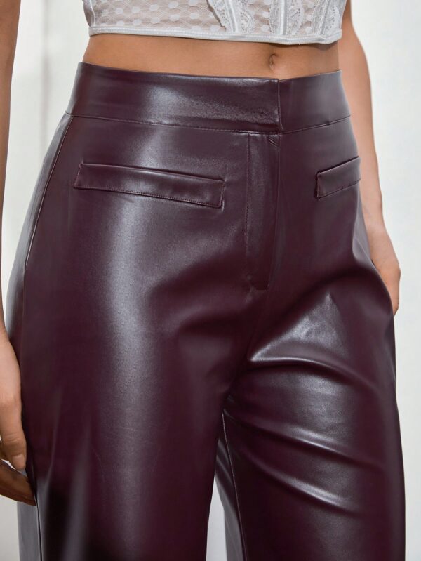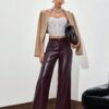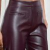 %90 Polyester %10 Elastane PU Kadın Deri Pantolon